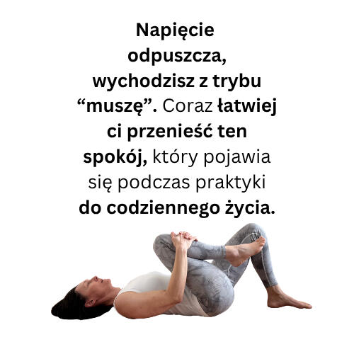 Kojąca joga na leżąco to całościowe narzędzie do pracy z napięciem w ciele i nieprzestającą myśleć głową.