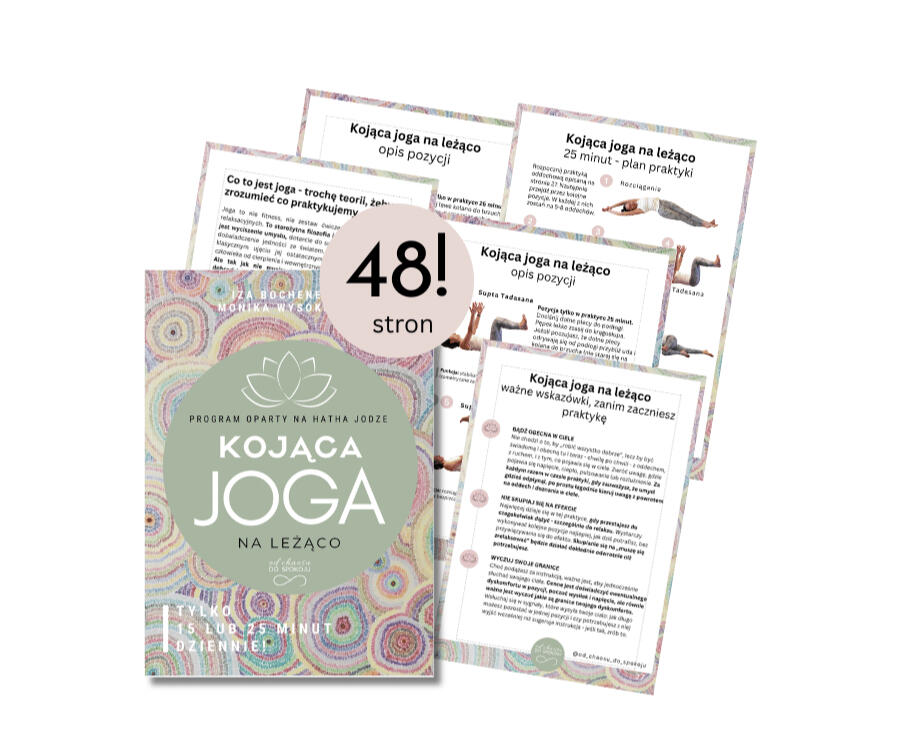 Na początku była to tylko chwila odpoczynku i upragnionego spokoju w głowie, ale z czasem stała się lekcją uważności na własne ciało, na oddech, emocje. To był mój ulubiony moment dnia. Tylko dla mnie. Po całym dniu, kiedy w pracy i w domu musiałam być stale „do dyspozycji”, nagle pojawiała się przestrzeń, w której to ja i moje potrzeby były w centrum.Zaskakująco, kojąca joga uczyła mnie powoli odzyskiwania miejsca w moim własnym życiu. Była moim pierwszym krokiem w stronę troski o siebie i świadomej, stopniowej zmiany życia na takie, które mi służy.