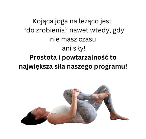 Kojąca joga na leżąco to całościowe narzędzie do pracy z napięciem w ciele i nieprzestającą myśleć głową.